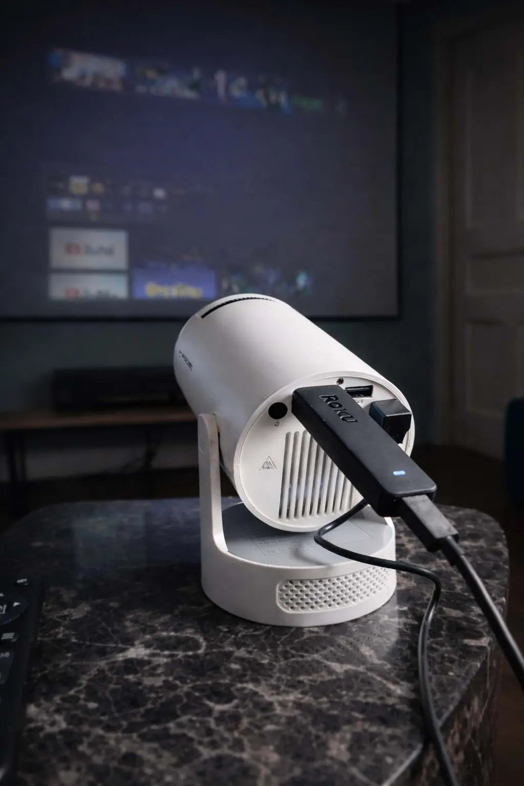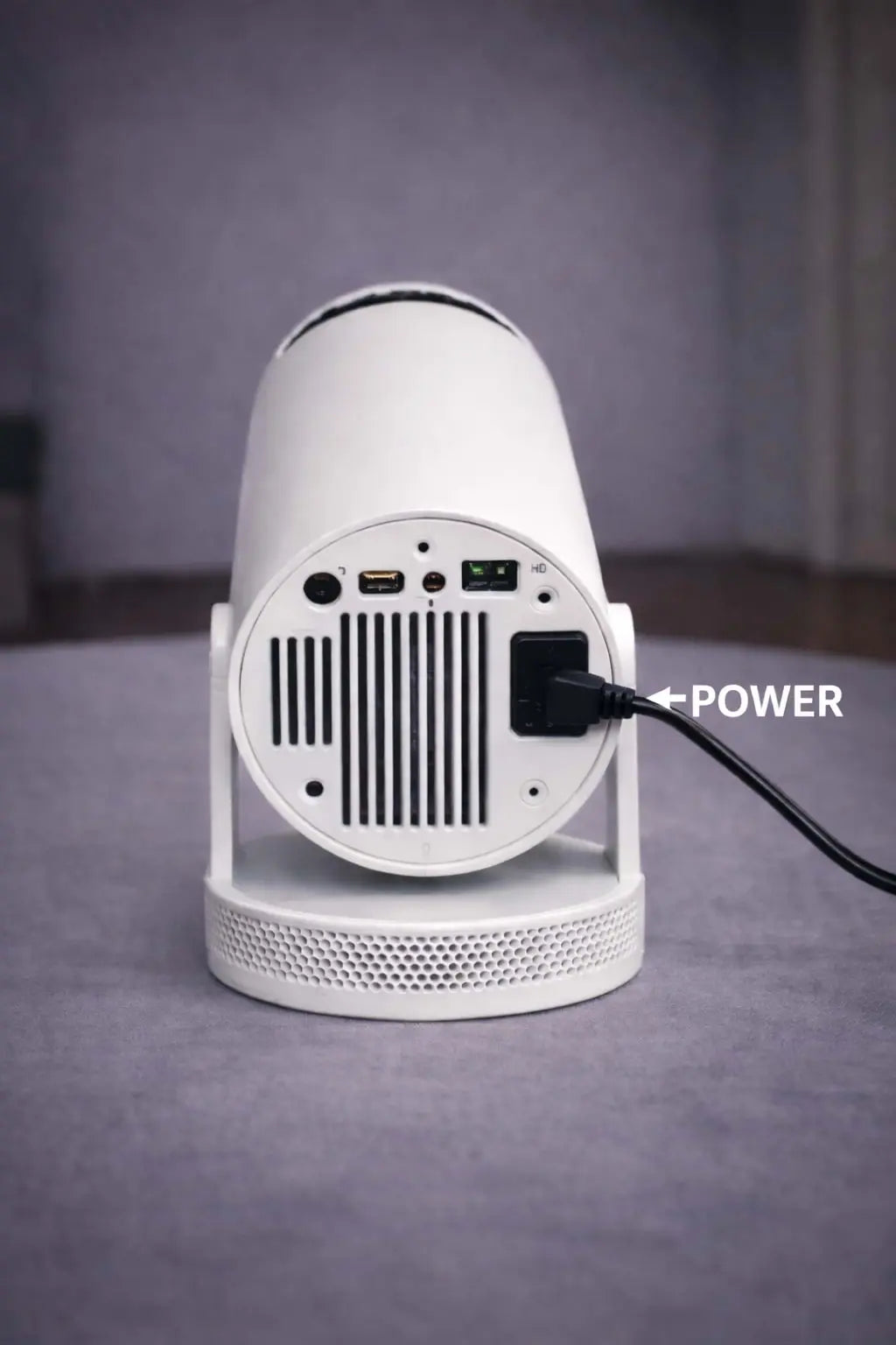 Connect the projector to power and your device.